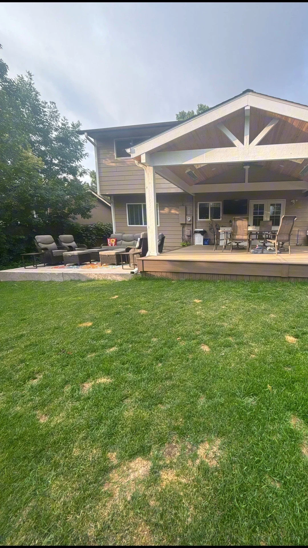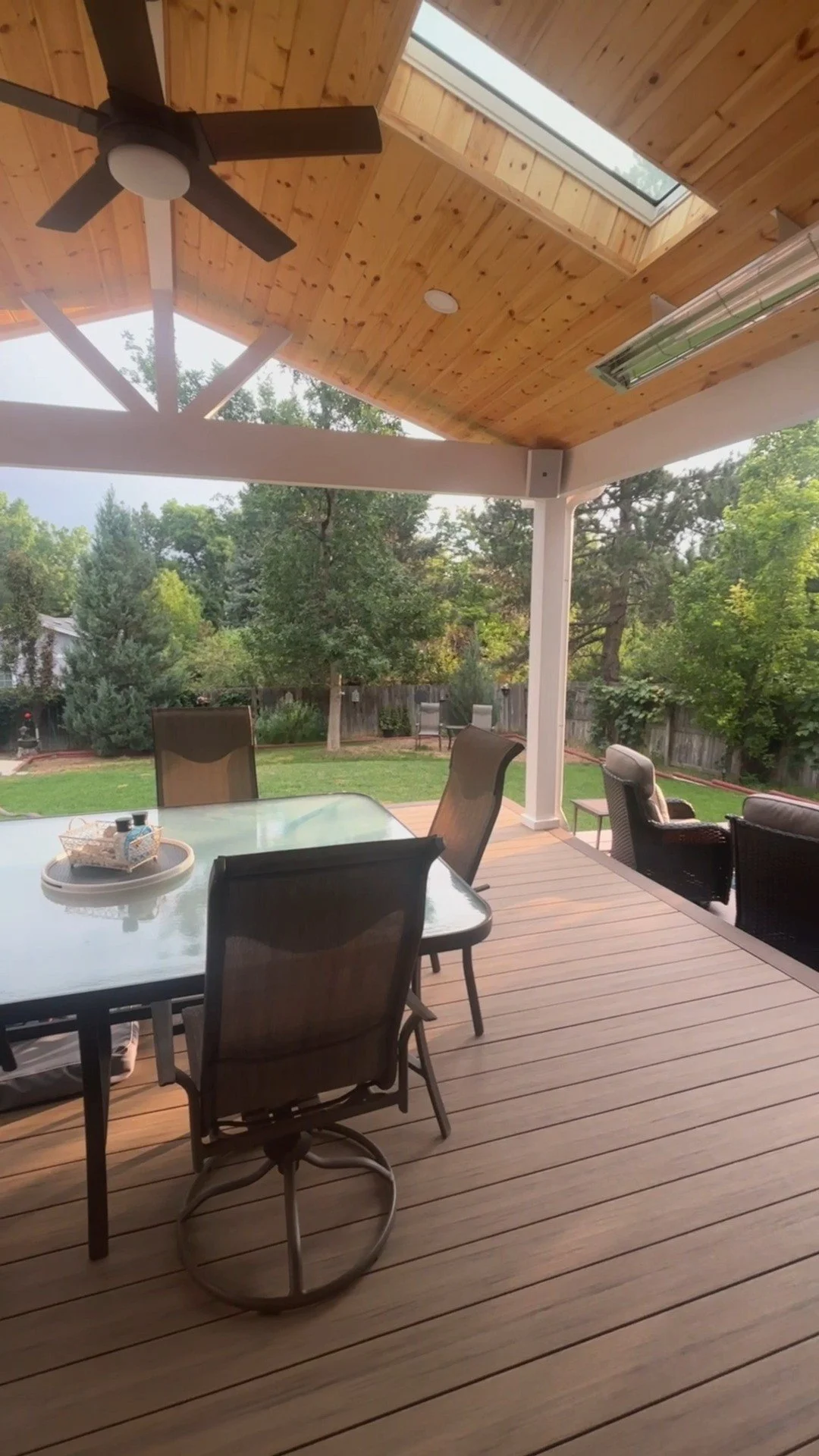 We took a functional but dated deck and transformed it into a luxurious outdoor living room designed for year-round comfort. This new space features a relaxing spa, a built-in grill top and bar, a cozy fire pit area, integrated infrared heaters, and a stylish privacy wallโall under a custom roof cover with skylights.