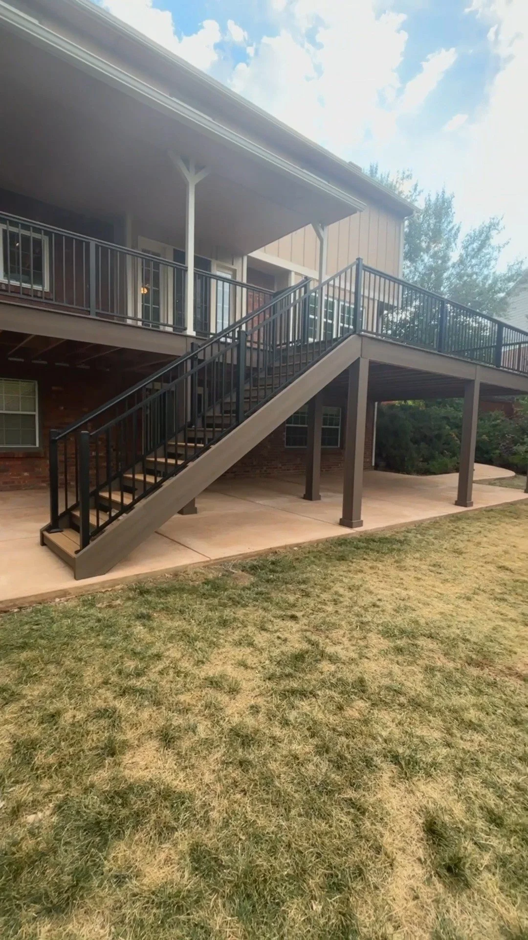 We installed custom helical piers for maximum stability, crafted a strong steel substructure, added a modern Deckorators Voyage deck surface, and finished it with a sleek ALX Cable Rail system. Every detail, from the open-riser staircase to the unobstructed views, was designed for durability, beauty, and seamless outdoor living.